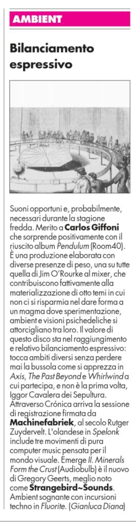 Suivi par intermittence sur ces pages, Machinefabriek fait partie de ces artistes trop prolifiques pour assurer des recensions exhaustives de ses publications. C’est donc à l’occasion d’un album sur Crónica (label lui aussi irrégulièrement suivi) qu’on retrouve le musicien néerlandais, près de vingt ans (!) après la dernière chronique d’un disque en solo. Spelonk, avec ses intitulés de morceaux simplement numérotés, s’avance comme une bande-son destinée à des images (film ou spectacle de danse, ce n’est pas précisé) et réalisée avec quelques pédales d’effets, de l’électronique et un oscillateur.